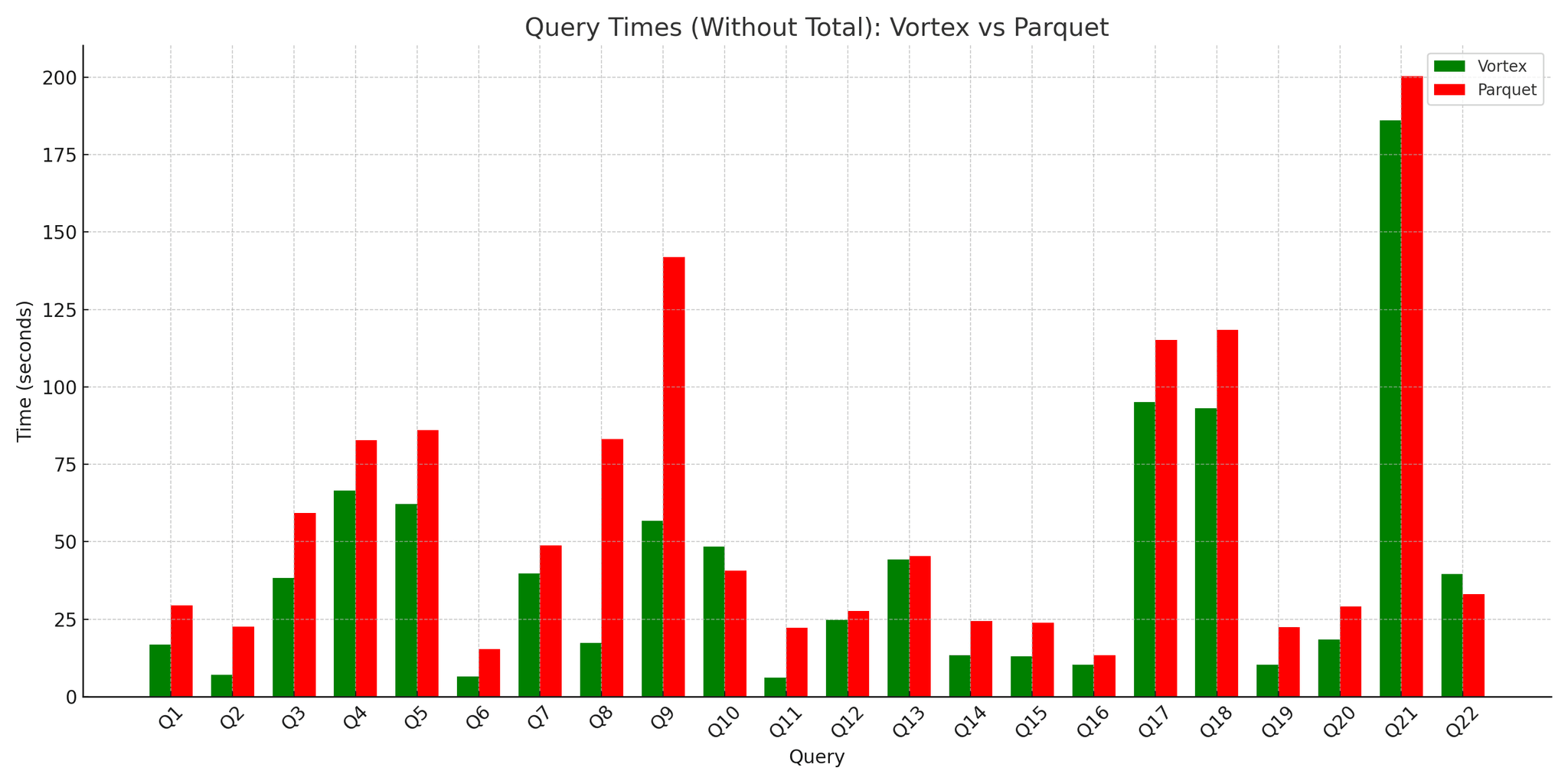 If you follow this blog, you’ll be familiar with our open source next-gen file format, Vortex. Vortex was built with an eye toward future data workloads, but it also provides excellent performance on traditional OLAP queries, consistently beating out Parquet in our DataFusion benchmarks for TPC-H and ClickBench.